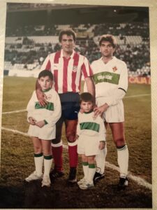 Era una gran responsabilidad, pero también una enorme ilusión. Desde pequeños muchos somos aficionados del Athletic y uno de mis primeros recuerdos futbolísticos fue una final de Copa entre el Athletic y el Elche que ganó el Athletic por 1-0. Siempre tuve presente la camiseta blanca con la franja verde y el recuerdo de jugadores míticos que llegaron a ser internacionales: Llompart, a Esteban, que era portero y lo conocí personalmente… El Elche era un club histórico que había disputado una final de Copa y, si no recuerdo mal, también alcanzó unas semifinales años antes. Era un equipo con prestigio en Primera División. Incluso recuerdo que fue el único equipo que derrotó al Real Madrid en una temporada en la que el equipo blanco permaneció invicto salvo por un 1-0 en Altabix.